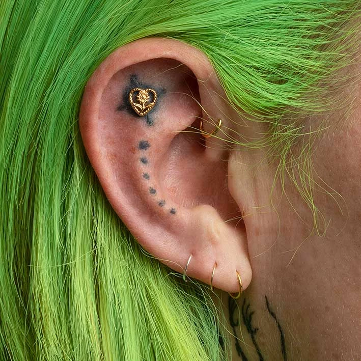 Can be worn in a helix, tragus, anti-tragus, flat or conch piercing.