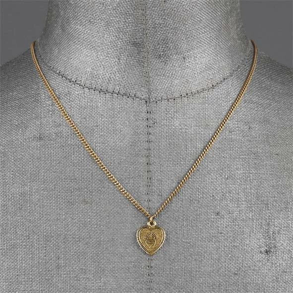 Gold Sacred heart charm necklace.Â