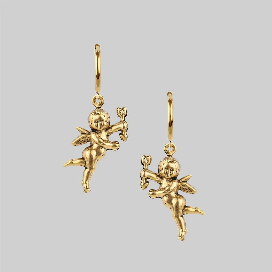 Super cute double sided Renaissance inspired Cherubs hang on gold clicker hoops.