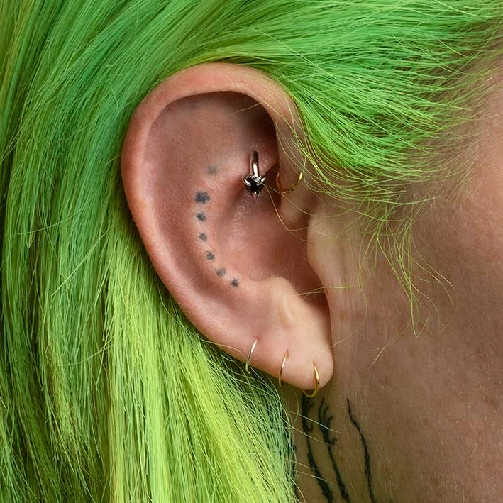 Everyone’s piercing location and ear shape are different! Ensure the internal diameter of the hoop will fit your desired piercing/position. Ask someone to help you measure the space of your desired location with a ruler. Jewellery for piercings is non exchangeable or returnable.