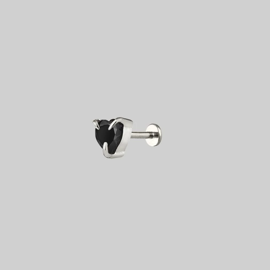 Cartilage stud earring featuring a Black Spinel heart set within claw shaped prongs.