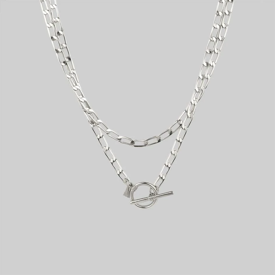 Double wrap layering curb chain necklace featuring a T-Bar clasp.