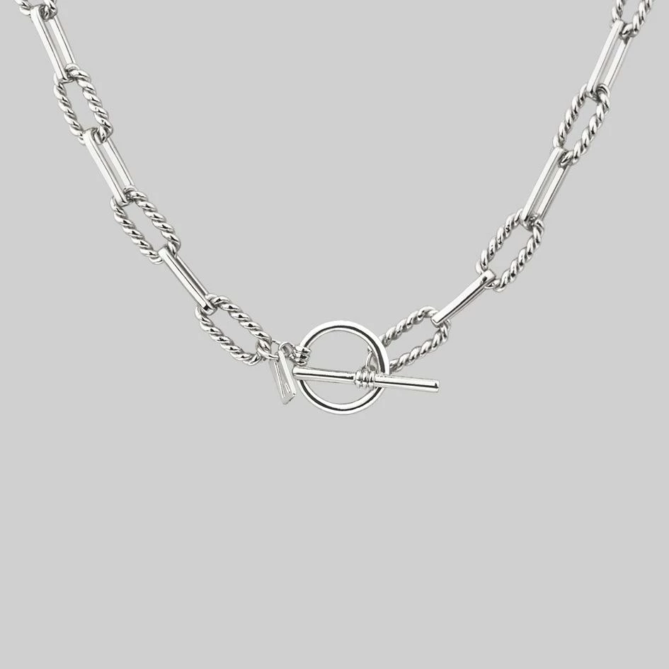 Chunky twisted ink chain featuring a T-Bar clasp.