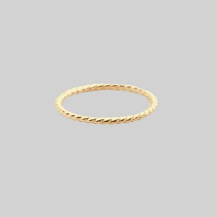 A classic must have! Delicate 14k Gold Plated twisted midi ring. Stack ’em up or get layering for a sophisticated vibe, or wear them on their own for elegant simplicity.Â