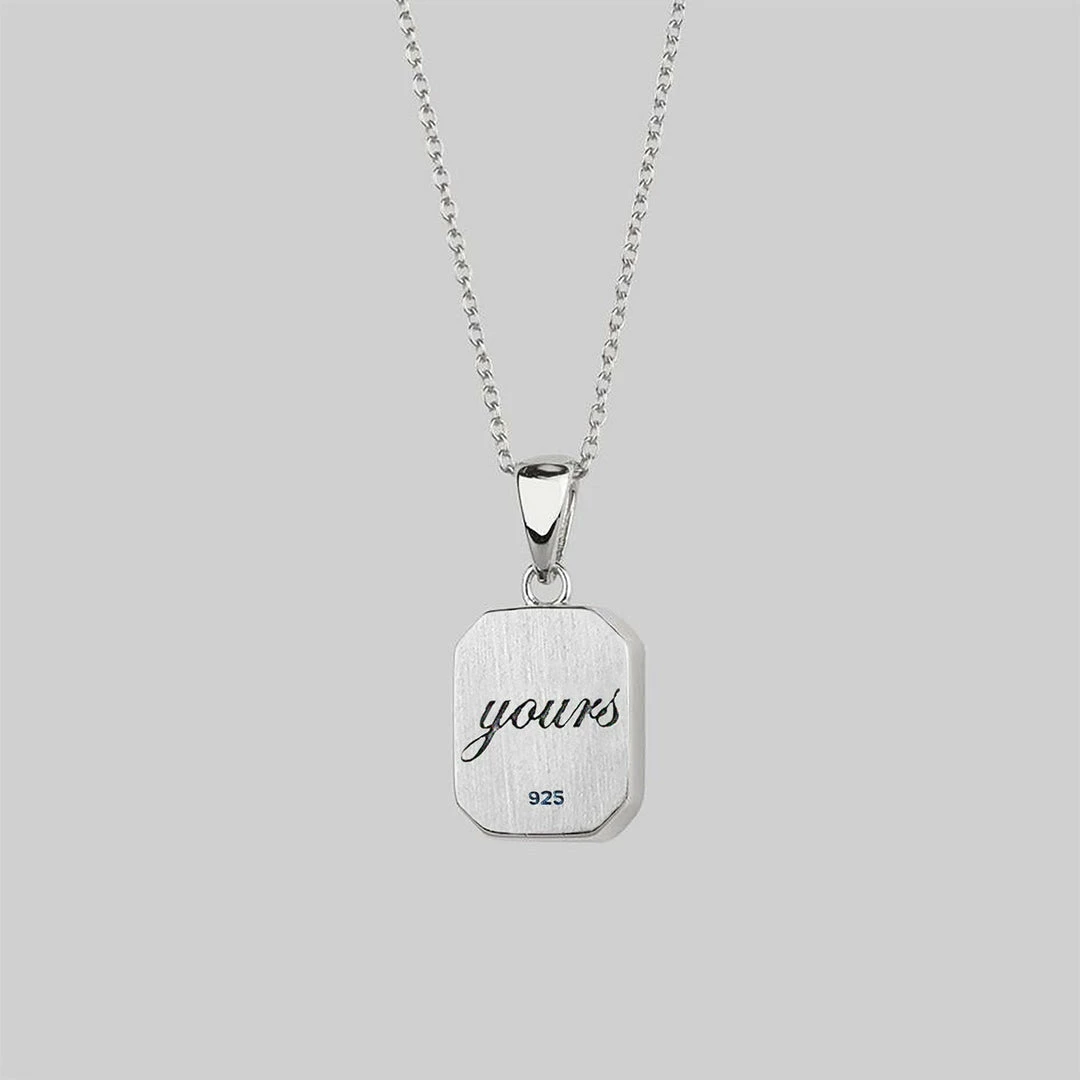 The word ‘yours’ is inscribed on the back of the pendant – is your heart your own and kept locked away safe from being broken? Or has your heart been devoted to another?