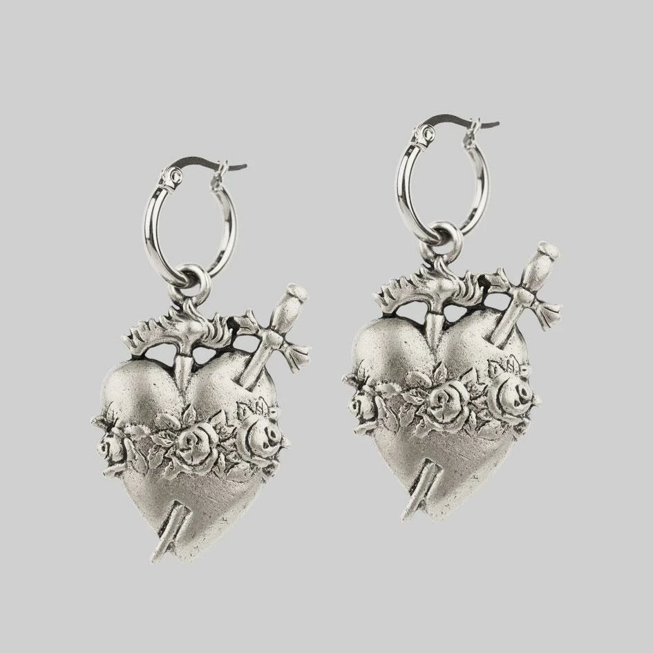 The ultimate sacred heart hoop earrings in silver.
