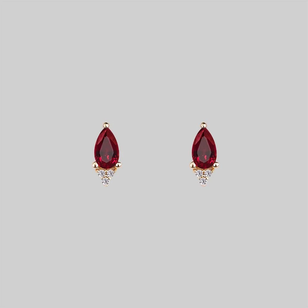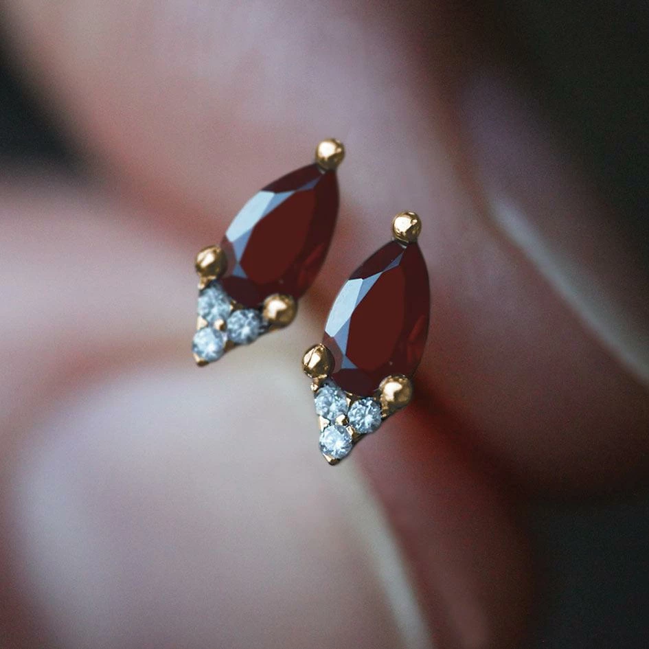 Pear cut Garnet gemstone with sparkling Cubic Zirconia ear studs.