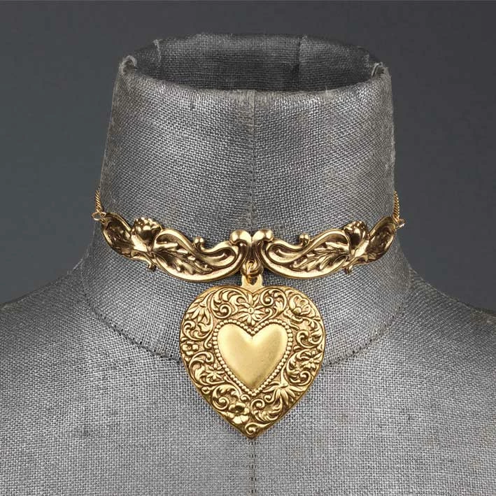 Baroque detailed choker featuring a huge ornate heart.