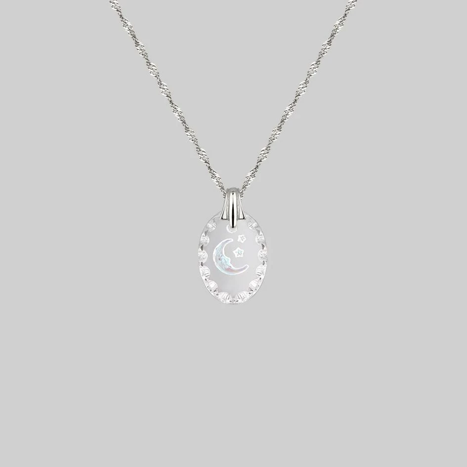 Vintage inspired scalloped edge glass Intaglio, with intricately engraved moon &Â star motif.