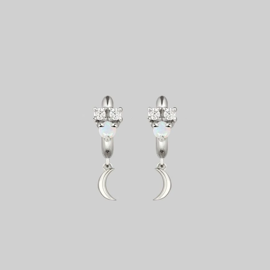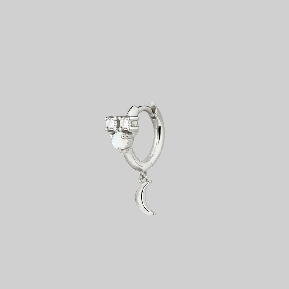 Celestial cluster clicker hoop earrings featuring an Iridescent central Opal gemstone and Cubic Zirconia stars.