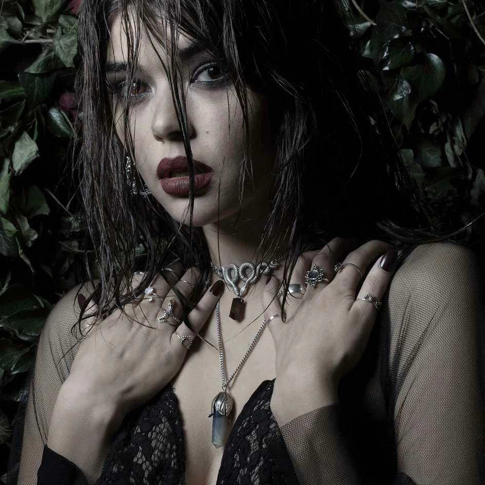 Mystical Large Labradorite gemstone encased within a wild petal flourish.