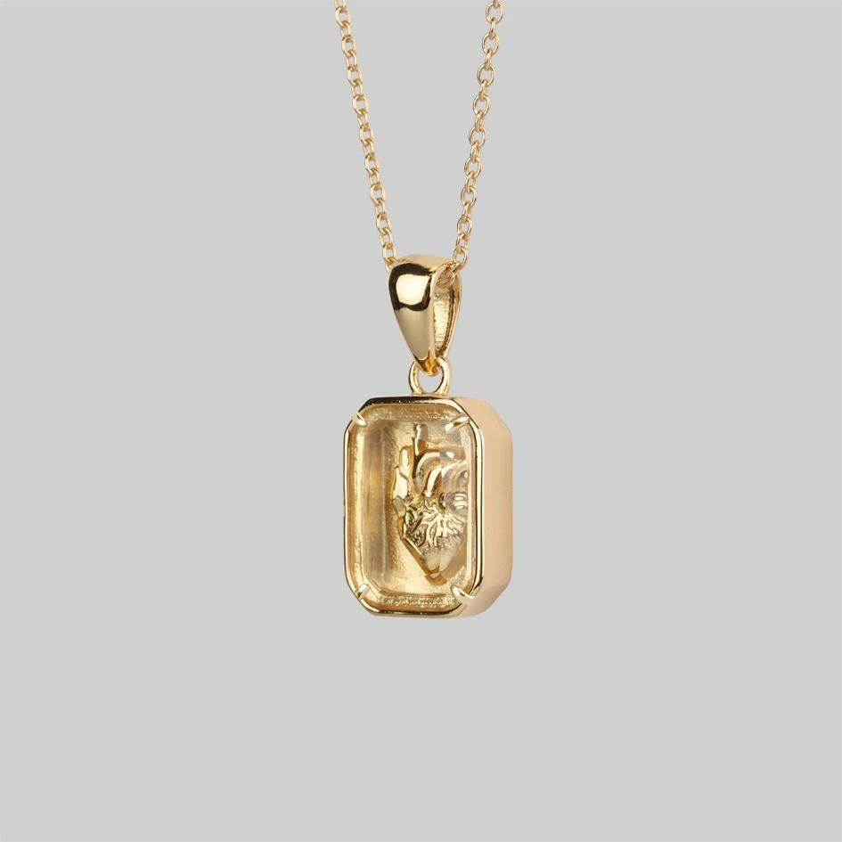 3D Anatomical heart under glass (Crystal CZ) necklace. Delicately detailed heart anatomy lies framed under faceted glass.