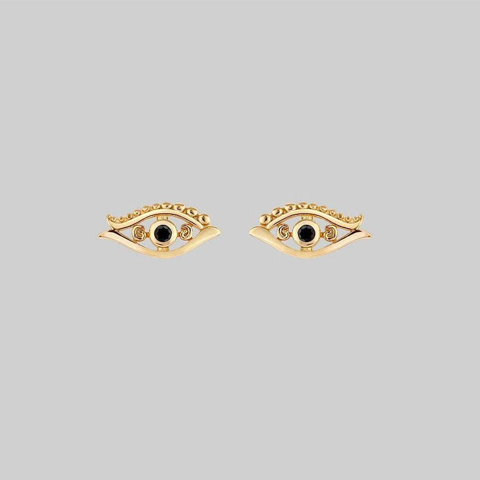 All seeing eye stud earrings with a Black Spinel gemstone center.