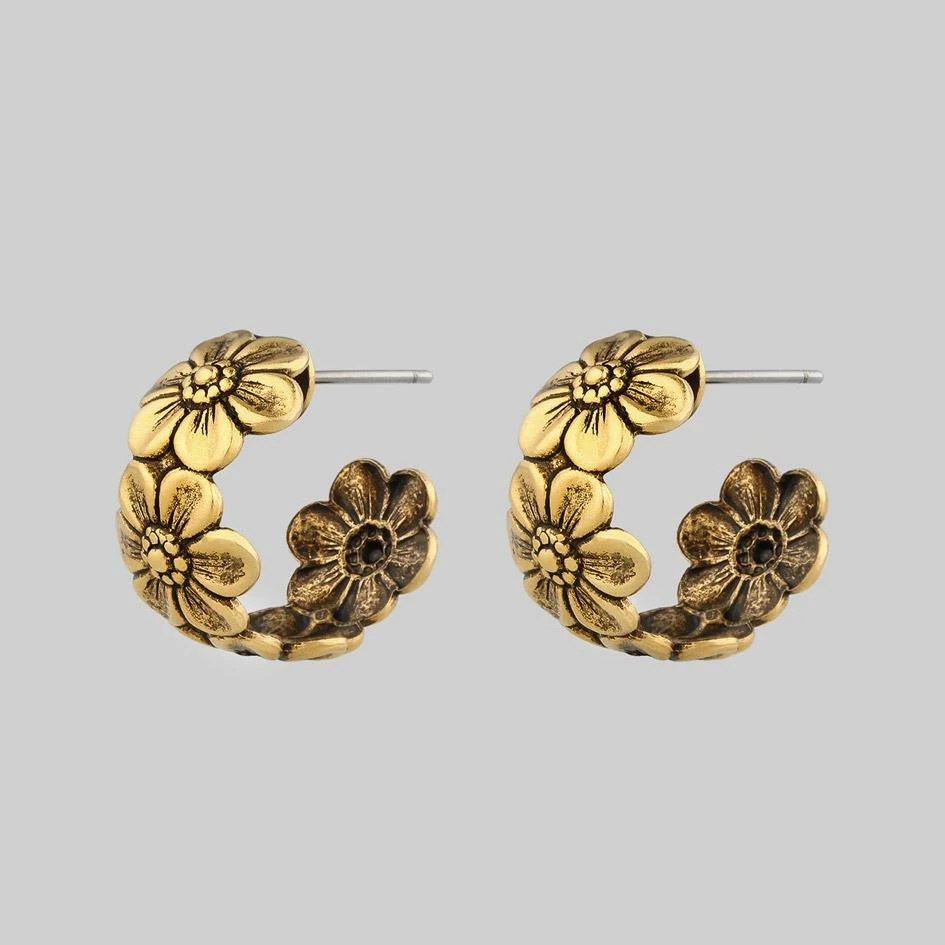 Delightful little darkly detailed daisy hoops.