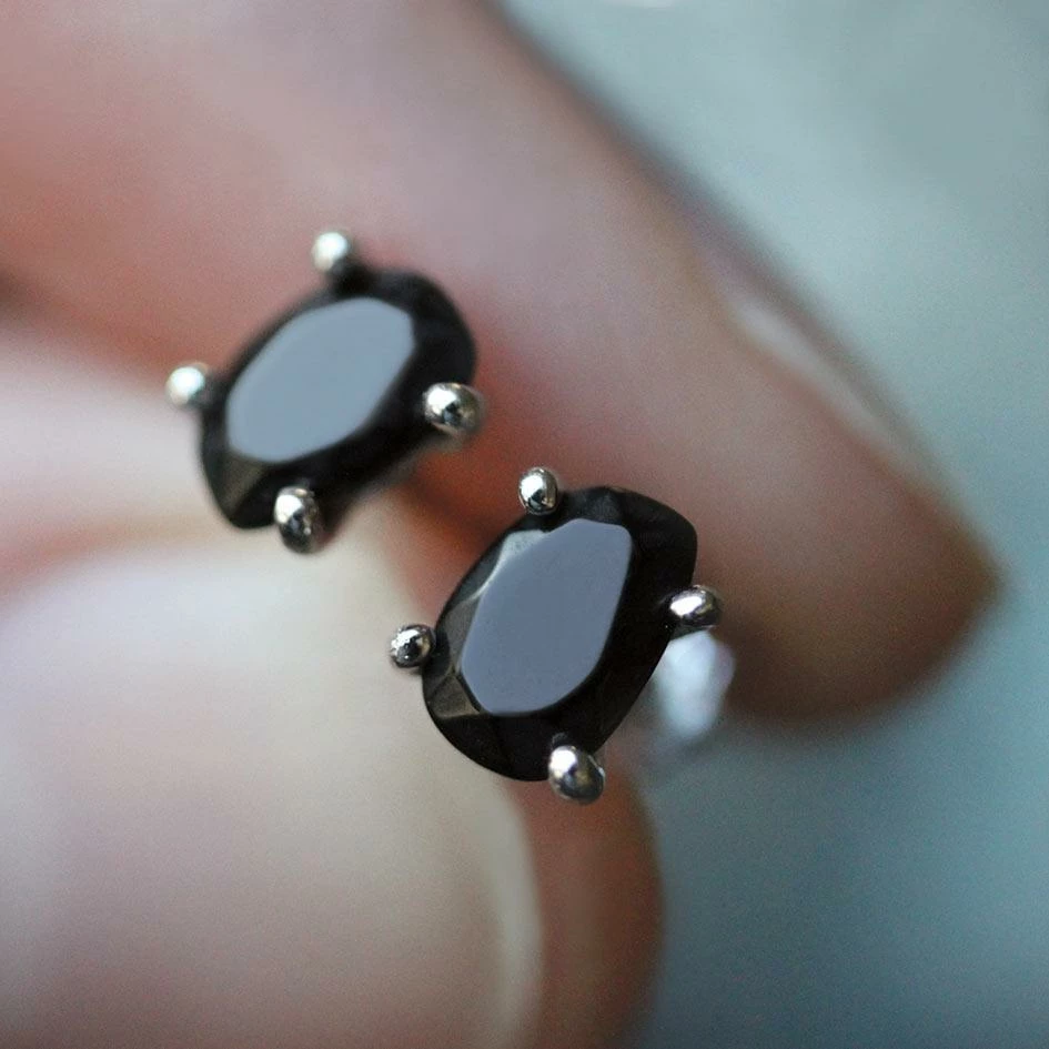 Simple earrings featuring claw set faceted pieces of Onyx gemstone.