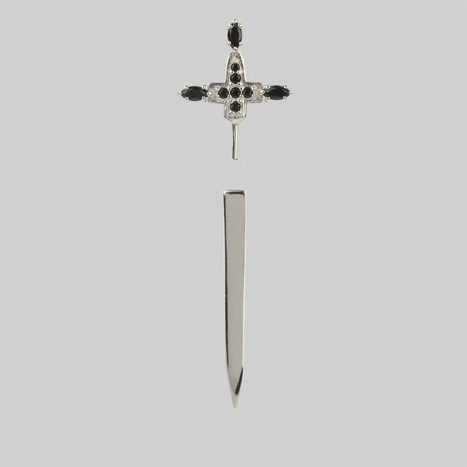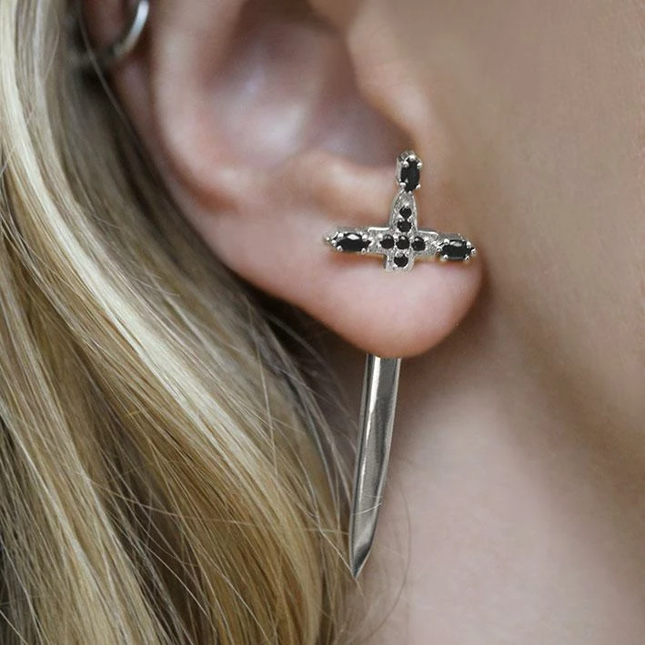 Fierce single dagger earring encrusted with tiny Black Spinel gemstones.