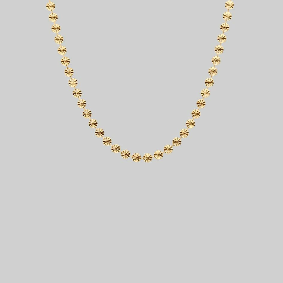 Add some shape and texture to your neck stack with this detailed circle chain necklace.