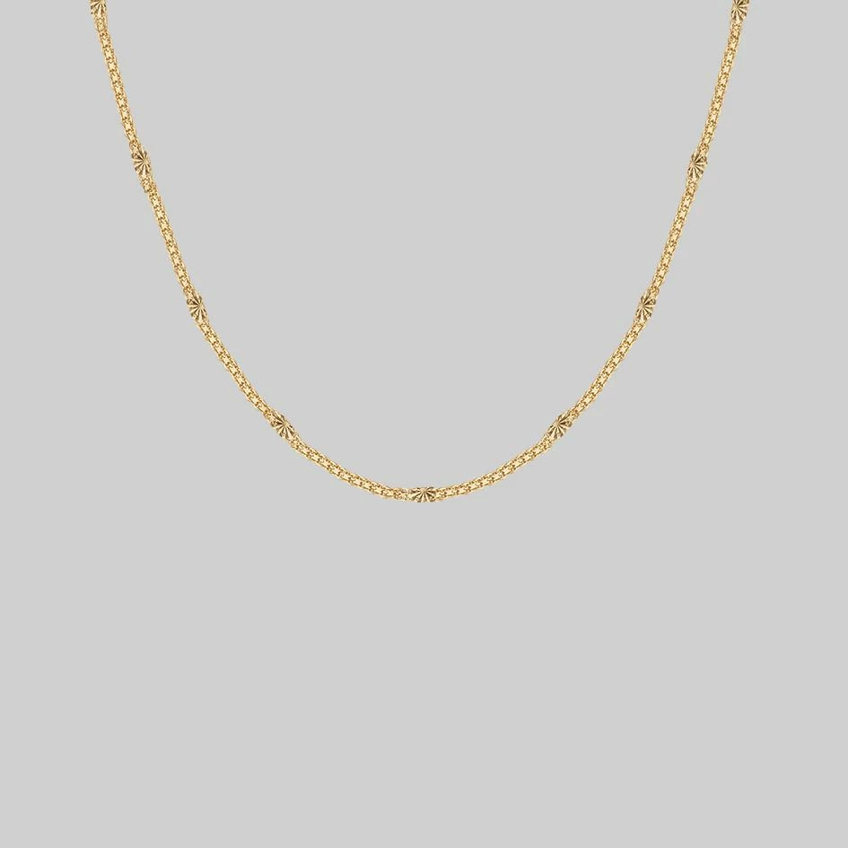 Add some texture to your neck-mess with this essential layering chain with sunburst detail.
