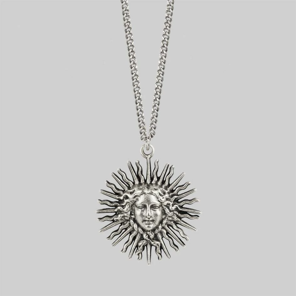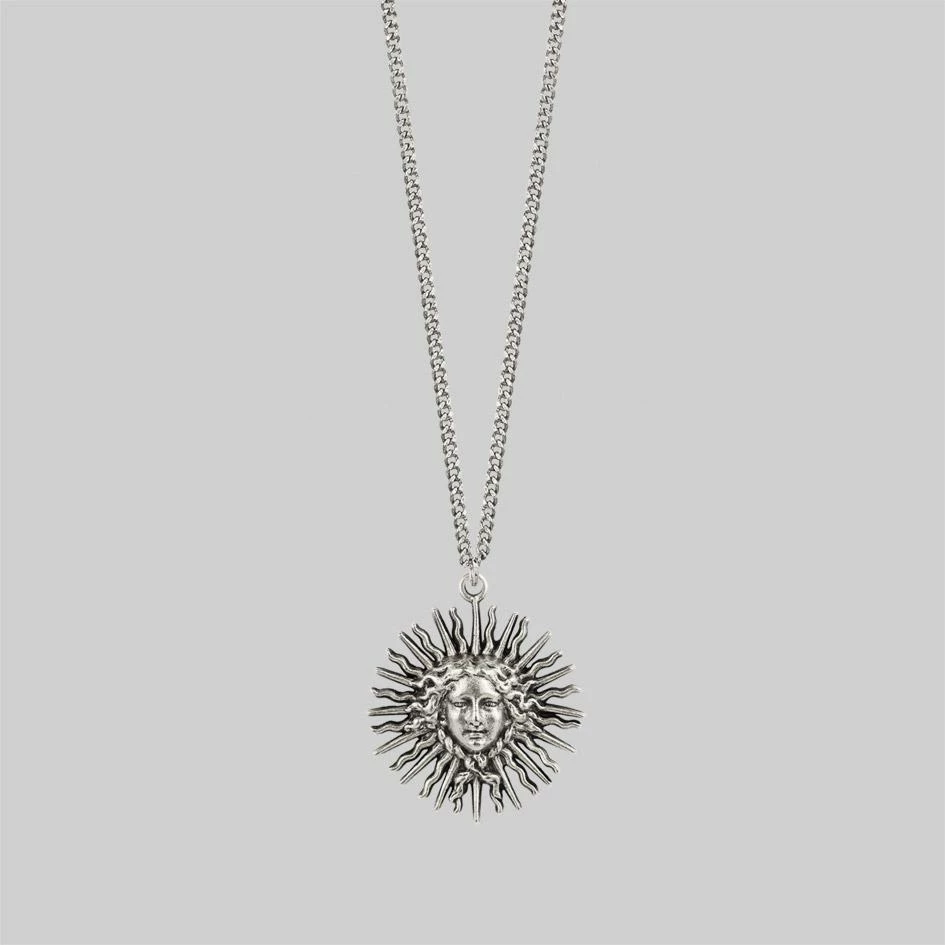 Sun goddess long necklace in silver.
