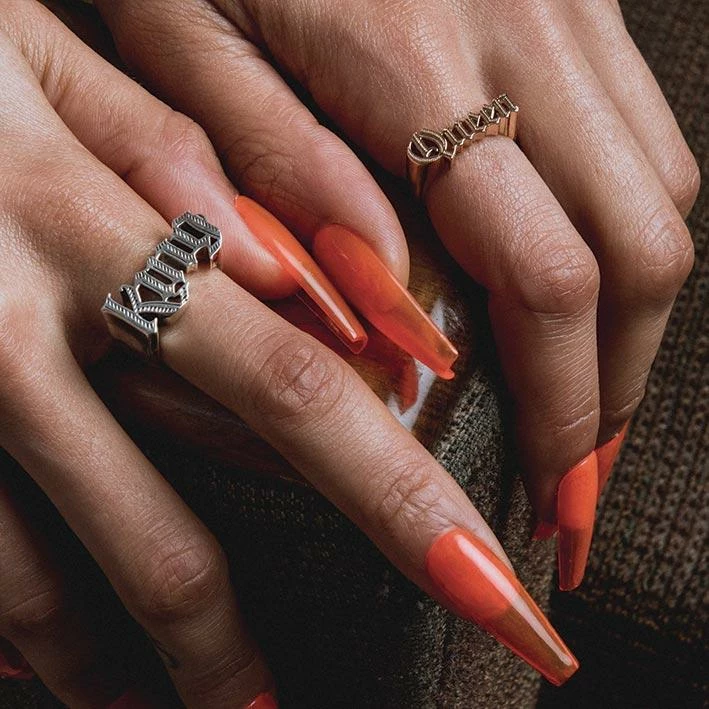 Regal old English gothic lettering King ring. Chunky, detailed letters for an authentic vintage style.