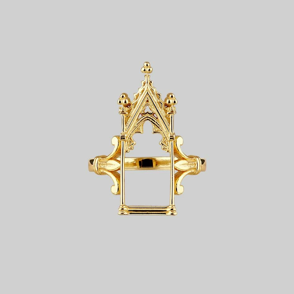 Gold open window Gothic frame ring.