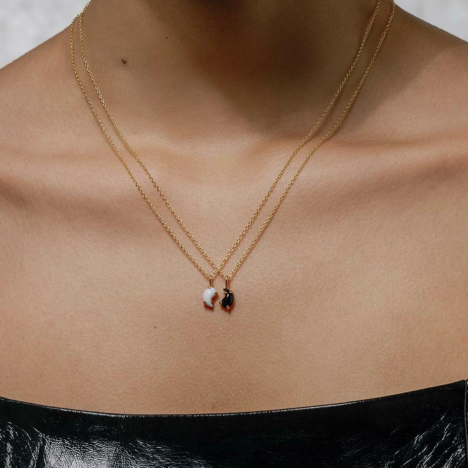 Buy a single necklace to wear alone, choose the side that represents you the most! Or buy a pair and share with a friend or wear together for an effortless stacked look.
