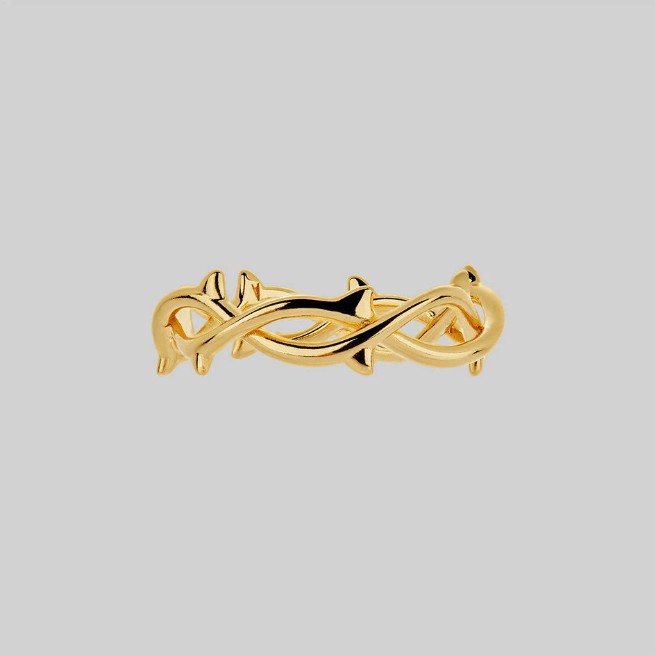 This menacingly beautiful organic band of thorns is the ideal stacking piece to add a dark twist to your ring collection.