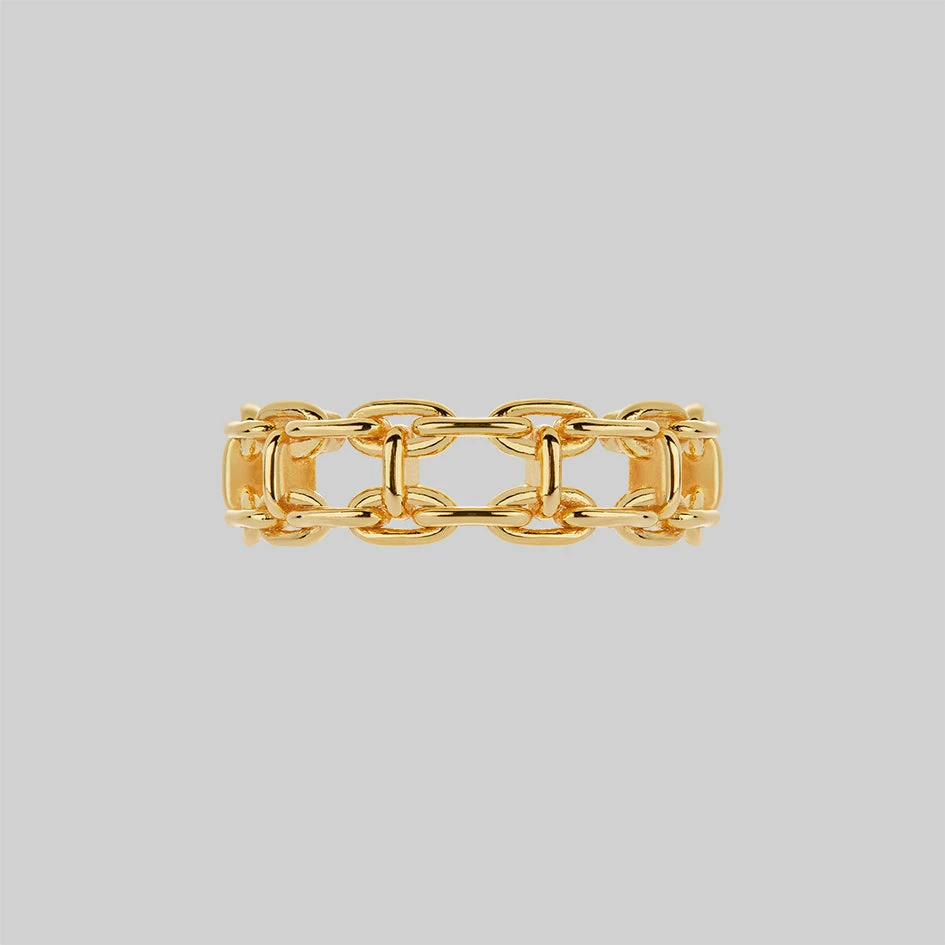 A nostalgic nod to the 90s. Stack the double chunky chain ring with other rings for an undeniably chic look.