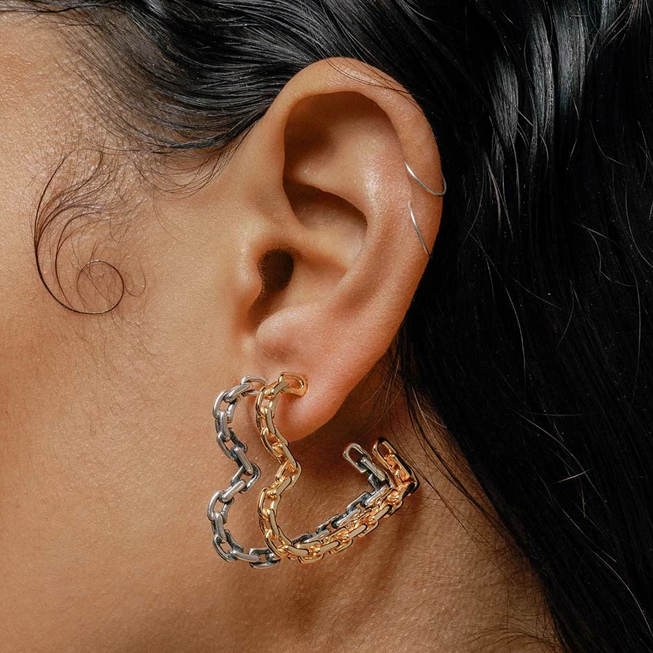 The links of love. Chain link heart hoops, a nostalgic nod to the 90s with a modern twist.