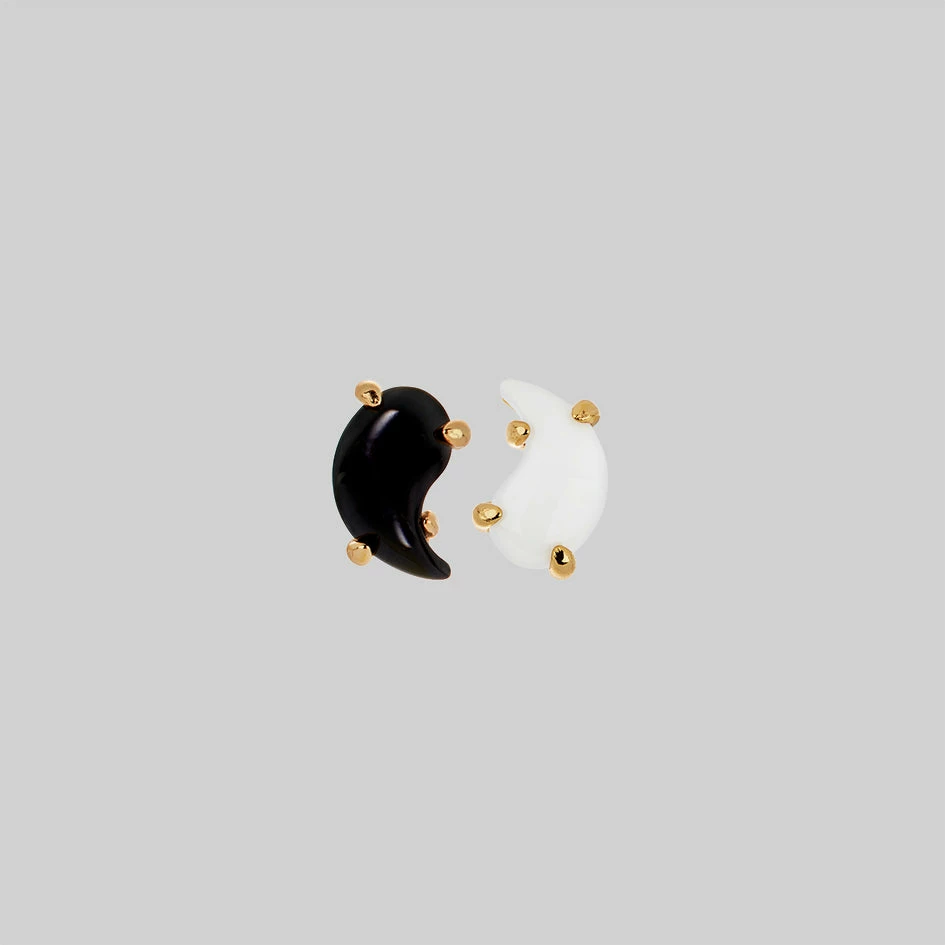 Keep the balance with the Yin & Yang earrings. Elevate your ear stack with these mismatched studs.