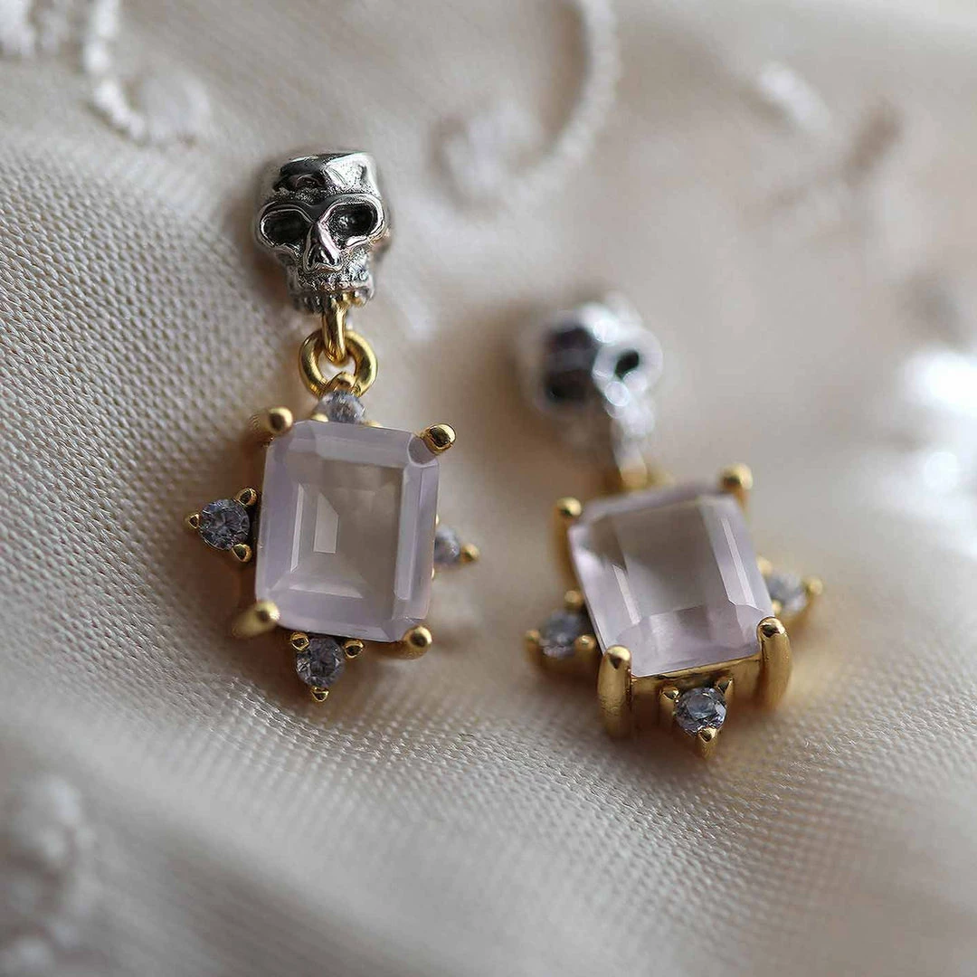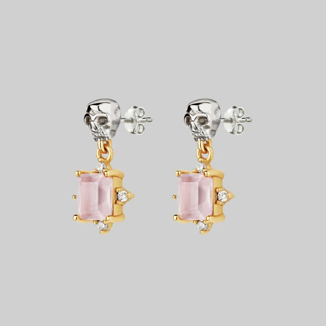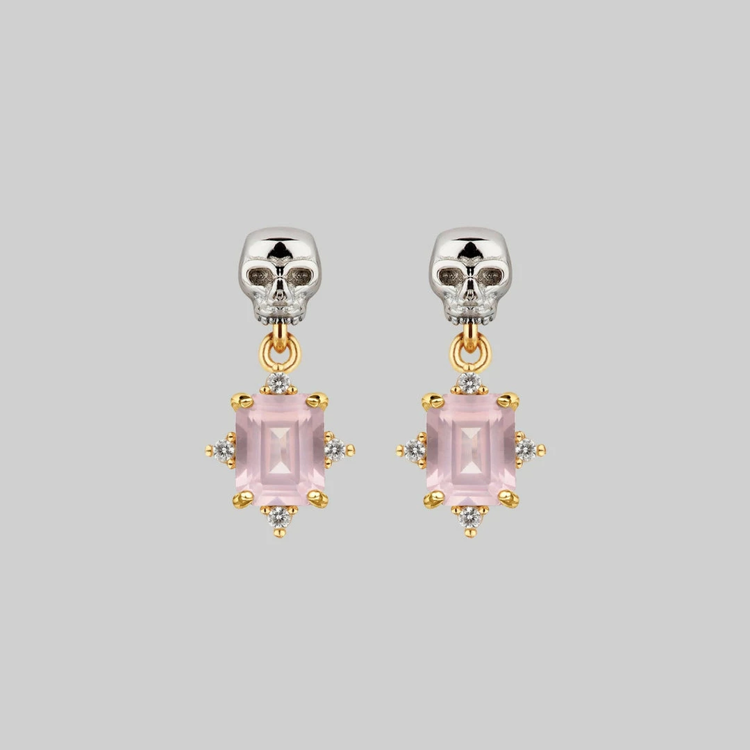 Deadly romantic little Skull and Rose Quartz dangly earrings.